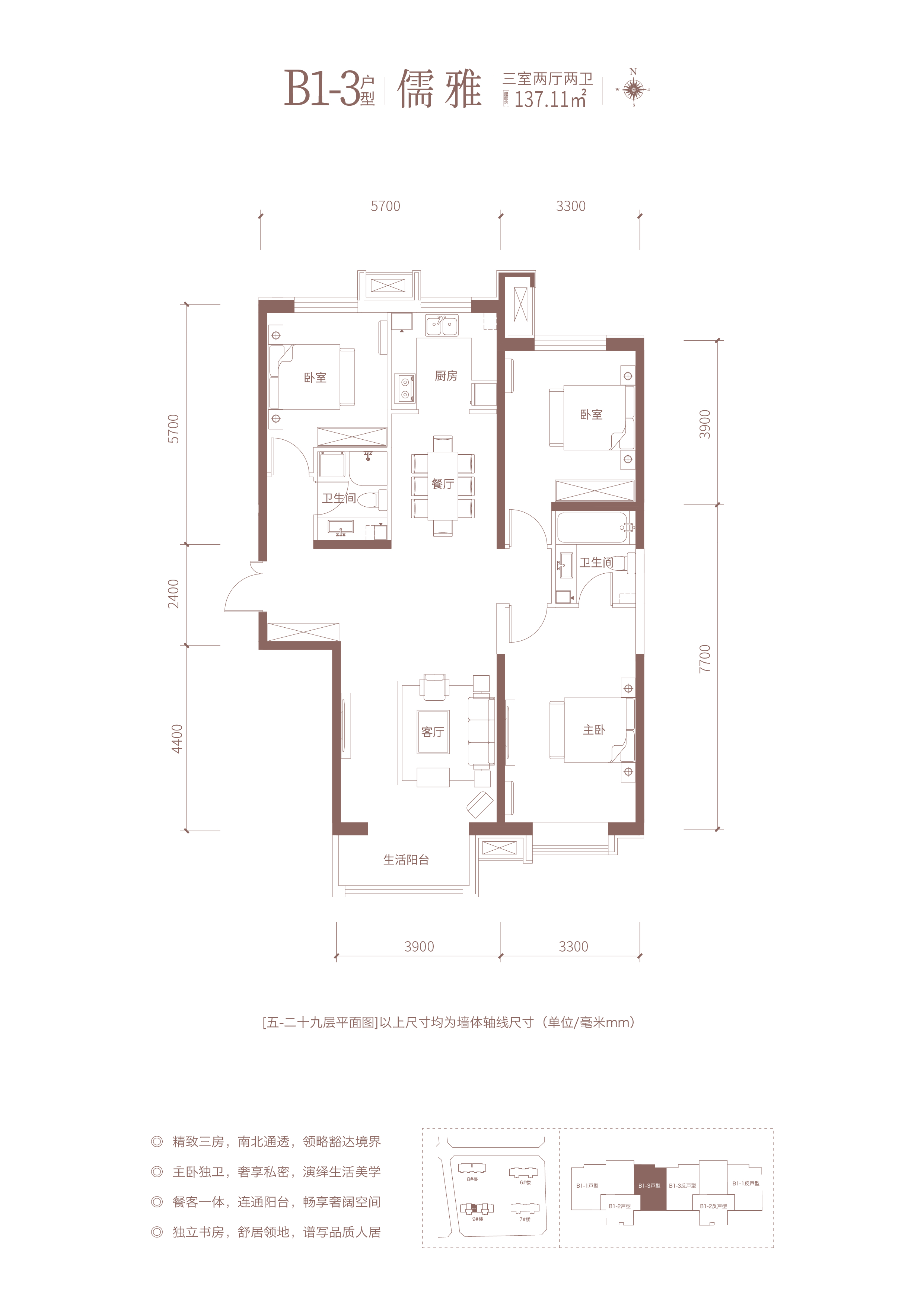 精致三房,南北通透 主卧独卫,奢享私密 餐客一体,奢阔空间