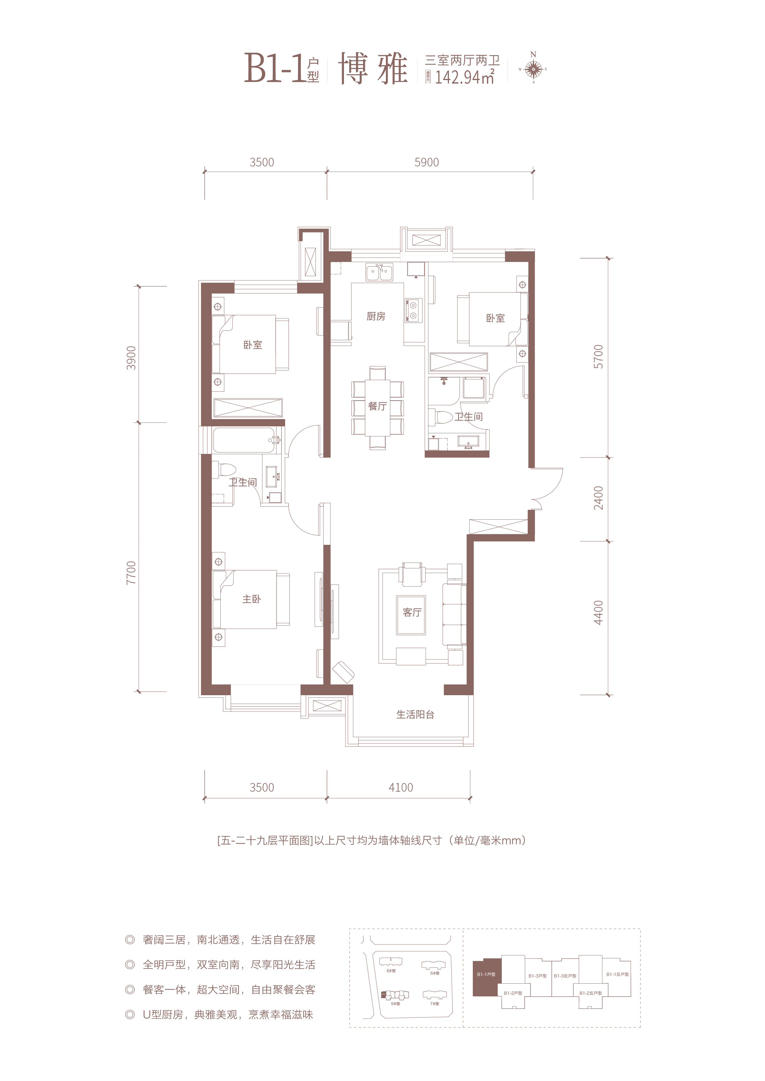 精致三房,南北通透 主卧独卫,奢享私密 餐客一体,奢阔空间